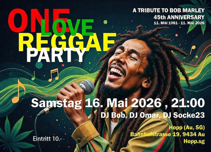 Eine Nacht ganz im Zeichen von Bob Marley und dem Geist des Reggae. „One Love“, „No Woman No Cry“, „Redemption Song“, „Buffalo Soldier“ – die unsterblichen Hymnen des Reggae-Königs füllen das Hopp mit karibischer Wärme, positiver Energie und mitreissendem Groove. Eine Partynacht für alle, die Musik fühlen und den Alltag hinter sich lassen wollen.