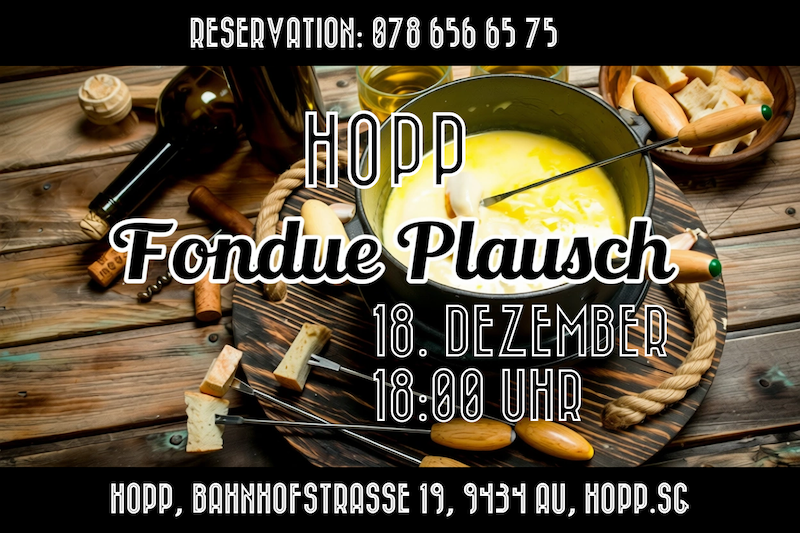 Geniess mit Freunden, Familie oder Arbeitskolleg:innen einen entspannten Fondue-Abend im Hopp. In gemütlicher Atmosphäre servieren wir euch ein feines Käsefondue mit allem, was dazu gehört – perfekt, um zusammen zu sitzen, zu plaudern und den Alltag für ein paar Stunden zu vergessen.